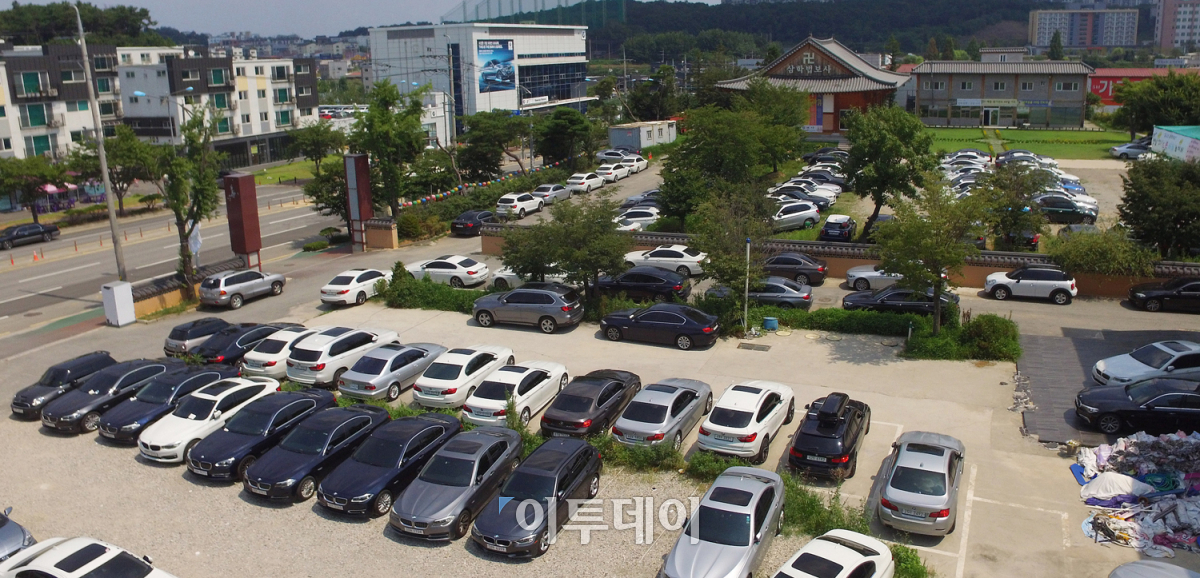 BMW 안전점검 미실시 차량에 대한 정부의 운행중지 명령 발효가 임박하며 광복절 휴일에도 BMW 서비스센터는 불안감에 휩싸인 고객들로 붐볐다. 국토교통부가 BMW 운행중지 명령 대상 차량에 대한 통보 및 행정절차에 돌입한 15일 경기도의 한 BMW 서비스센터 인근 공터에 BMW 차량들이 가득 주차돼 있다. 점검 명령이 발동되면 차량 소유자는 즉시 긴급 안전진단을 받아야 하며, 해당 차량은 안전진단 목적 외에는 운행이 제한된다. 오승현 기자 story@
