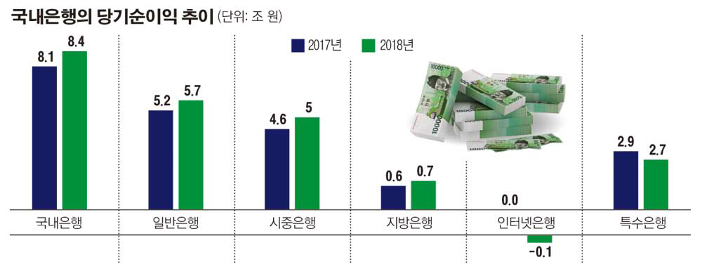 금융감독원은 올 상반기 국내 은행 당기순이익이 8조4000억 원으로 지난해 같은 기간(8조1000억 원)보다 3000억 원 증가했다고 16일 밝혔다. 이자이익이 크게 늘고, 대손 비용이 줄어든 결과다.