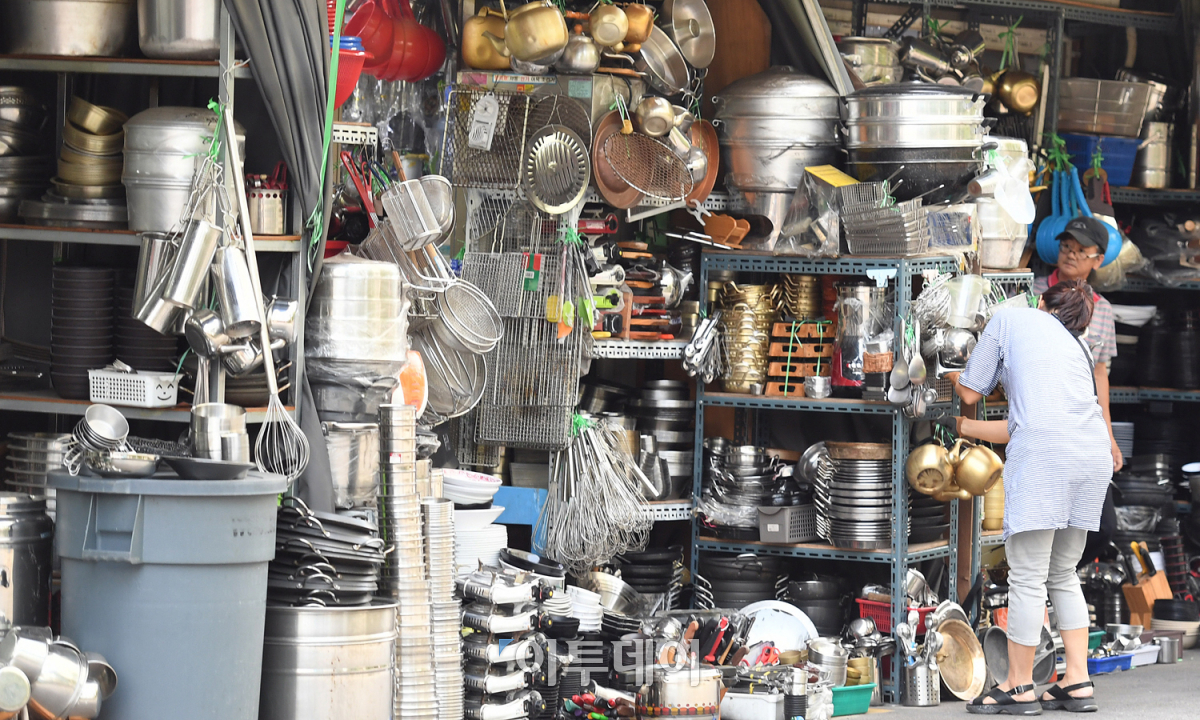 음식점 10곳이 문을 열 동안 9곳 이상이 폐업하는 등 자영업이 불황의 직격타를 맞고 있다. 지난해 사업자 등록을 한 18만1000여 음식점 중 16만6000여 음식점이 폐업 신고를 하는 등 신규 대비 폐업 등록 비율이 6년 만에 최고 수준인 92%를 기록했다. 또한 지난해 '요식업'을 비롯한 숙박, 도소매업 등 4대 자영업의 폐업률은 역대 최고치인 88.1%를 보였다. 19일 서울 중구 서울중앙시장의 중고 주방용품 상점에 폐업한 음식점에서 사들인 중고 주방용품들이 잔뜩 쌓여 있다. 오승현 기자 story@