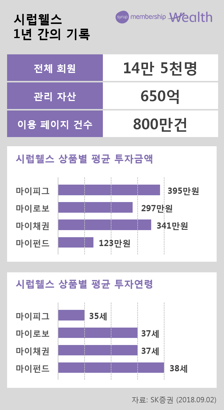 SK증권과 SK플래닛이 제휴해 시럽월렛 내에서 운영 중인 시럽웰스가 출시 1년만에 회원 14만 명과 관리 자산 650억 원을 돌파했다고 3일 밝혔다.