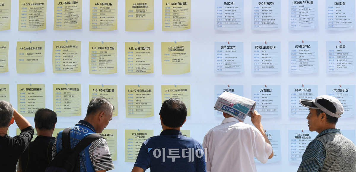 서울시가 노숙인, 쪽방 주민 등 취약계층을 대상으로 일자리 박람회를 개최했다. '제3회 취약계층 일자리 박람회'가 열린 4일 서울 중구 서울광장에서 취약계층 구직자들이 자신에 맞는 일자리를 찾고 있다. 60개 중소업체가 참가한 이번 박람회에서 취약계층 369명에게 경비, 미화, 기물 관리, 주방보조, 택배 배송, 방역소독 등의 업무를 수행할 기회가 주어졌다. 오승현 기자 story@