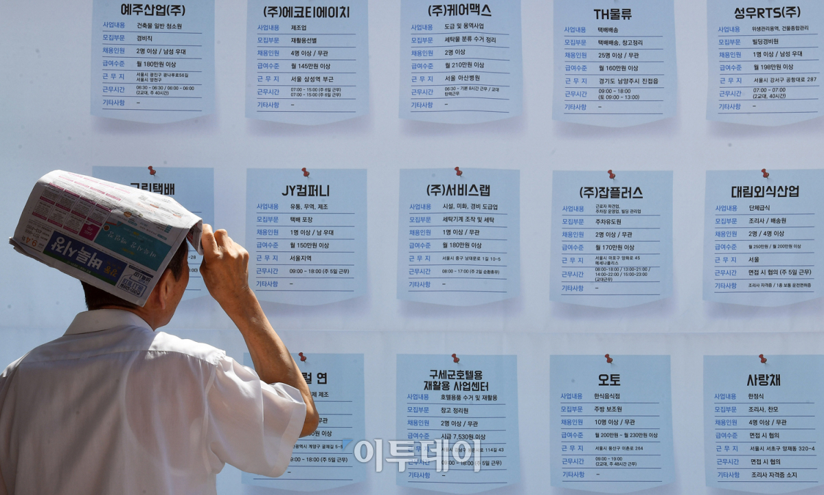 서울시가 노숙인, 쪽방 주민 등 취약계층을 대상으로 일자리 박람회를 개최했다. '제3회 취약계층 일자리 박람회'가 열린 4일 서울 중구 서울광장에서 한 구직자가 손에는 구인, 구직 신문을 들고 자신에 맞는 일자리를 찾고 있다. 60개 중소업체가 참가한 이번 박람회에서 취약계층 369명에게 경비, 미화, 기물 관리, 주방보조, 택배 배송, 방역소독 등의 업무를 수행할 기회가 주어졌다. 오승현 기자 story@