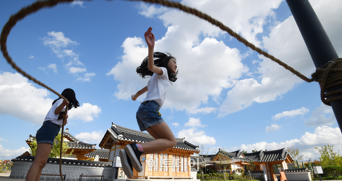 폭우가 그친 후 쾌청한 초가을 날씨를 보인 4일 경기도 김포시 김포아트빌리지에서 어린이들이 높고 파란 가을 하늘을 즐기고 있다. 기상청은 "당분간 고기압의 영향으로 대체로 맑은 날씨가 이어지다가 오는 6일부터 전국이 북태형양고기압 가장자리에 들며 구름이 많아질 것"이라 내다봤다. 오승현 기자 story@