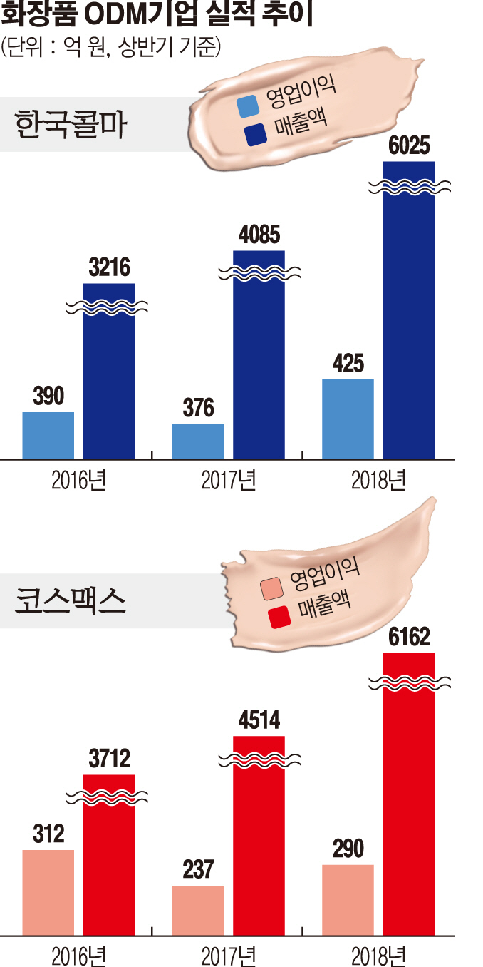 업계 관계자는 “모바일과 H&B스토어, 편의점 등 소비자와의 접점이 넓어지면서 ODM 업체들의 기술력과 상품이 각광받고 있다”며 “이젠 ODM 기업들이 기술력을 바탕으로 웬만한 중견 화장품 브랜드와 어깨를 나란히 할 정도의 위치에 올라선 상태”라고 분석했다.