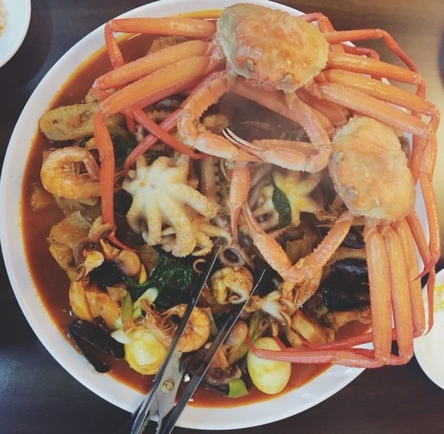 홍게해물찜닭을 주문하면 해물찜닭 위에 홍게가 통째로 얹혀져 나온다. 비주얼만으로도 감탄을 자아낸다.