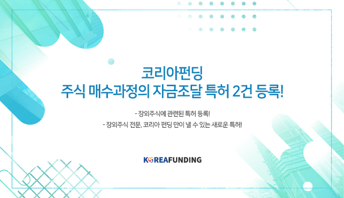 P2P금융 전문회사 코리아펀딩은 2016년에 특허 출원한 '공모주 청약 대금 대출을 위한 금융 기술 서비스 방법 및 그 장치'와 '배정 주식 납입대금 대출을 위한 금융 기술 서비스'의 특허기술에 대해 최종적으로 2건의 특허를 등록했다고 12일 밝혔다.