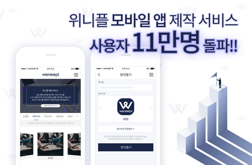 위니플 모바일 앱 제작 서비스 사용자가 11만 명을 돌파했다. 이번 사용자 수 집계는 서비스 정식 론칭 4개월 만에 이뤄낸 수치다.