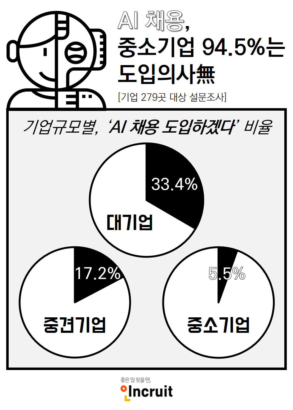 중소기업의 94.5%는 AI채용을 도입할 계획이 없는 것으로 나타났다.
