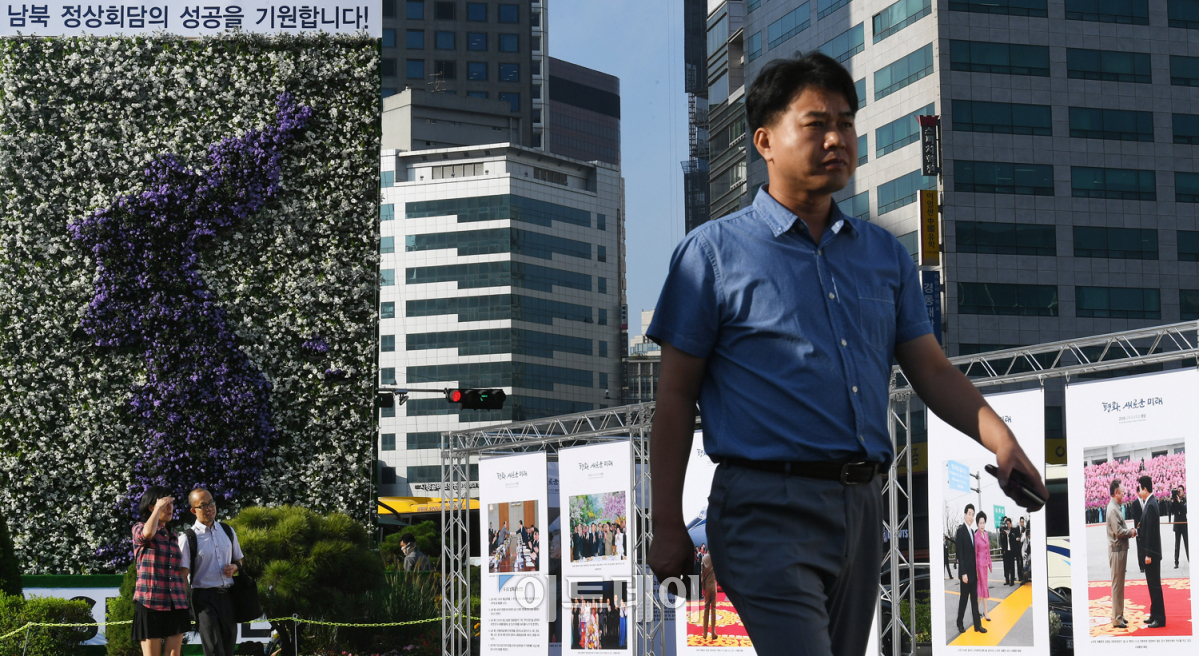 문재인 대통령과 김정은 북한 국무위원장의 역사적인 세 번째 만남이 하루 앞으로 다가왔다. '2018 평양 남북정상회담' 개최일을 하루 앞둔 17일 오전 서울광장에 남북정상회담의 성공적인 개최와 한반도 평화를 기원하는 식물 조형물이 설치돼 있다. 문 대통령은 18일 서해 직항로를 통해 평양을 방문, 김 위원장과 제3차 정상회담을 비롯해 각종 공연 관람과 산업현장 시찰 등 2박3일 간의 방북 일정을 소화한다. 오승현 기자 story@