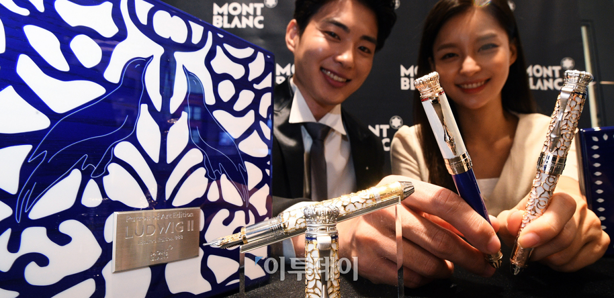 세계적인 명품 브랜드 몽블랑이 '2018 몽블랑 문화예술 후원자 루드비히 2세 에디션(Patron of Art Edition, Homage to Ludwig Ⅱ' 만년필들을 17일 서울 중구 롯데 애비뉴엘 백화점에서 최초로 공개하고 있다.
