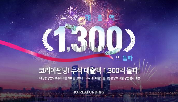 장외주식 전문 P2P금융 플랫폼 코리아펀딩이 누적 대출액 1300억원을 돌파했다고 17일 밝혔다.
