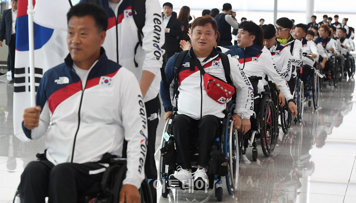 '2018 인도네시아 장애인아시아경기대회 대한민국 선수단 출영식'이 열린 2일 오후 인천국제공항 제2여객터미널 출국장에서 선수단이 출국하고 있다. 대한민국 선수단은 종합성적 3위를 목표로 17개 종목에 참가해 열전을 벌인다. <20181002 인천=사진공동취재단 이투데이 오승현기자>