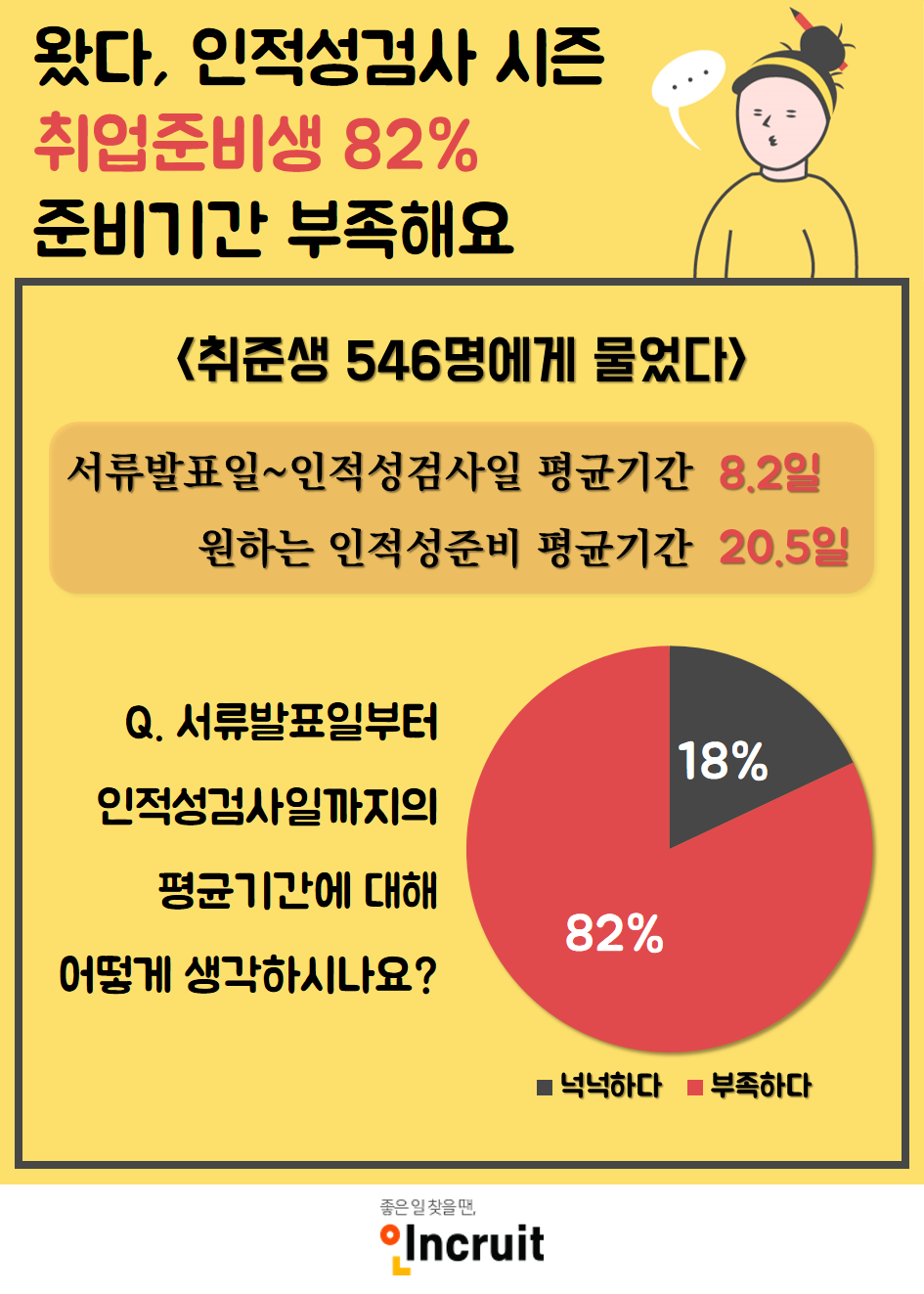 취업준비생 10명 중 8명은 인적성검사일까지의 기간이 부족하다고 느끼는 것으로 조사됐다.