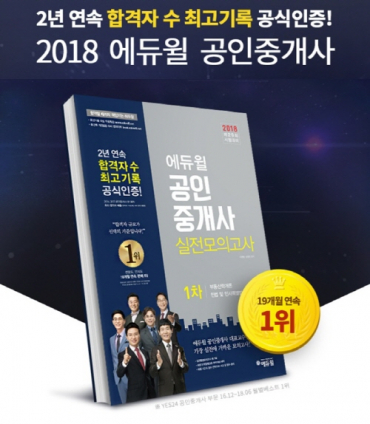 제29회 공인중개사 시험이 오는 27일 시행됨에 따라 수험생의 최종 마무리 학습에 도움이 되는 ‘2018 에듀윌 공인중개사 1차 실전모의고사’ 교재가 10월 1주차 베스트셀러 1위를 차지하고 있는 것. 그 뒤를 공인중개사 기출문제집 1차 교재가 따르고 있다.