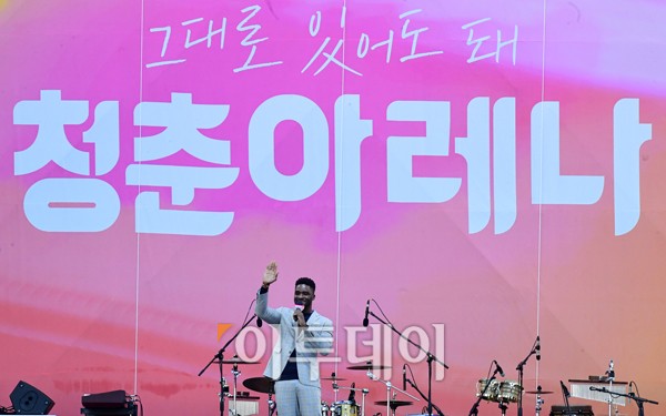 '청춘아레나 2018-그대로 있어도 돼'가 6일 인천 남구 문학경기장에서 열린 가운데 방송인 샘 오취리가 관객들과 대화를 하고 있다. 고이란 기자 photoeran@