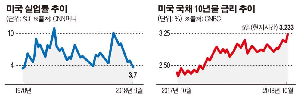 9월 실업률 3.7%로, 1969년 12월 이후 가장 낮아…미국채 10년물 금리 7년 만에 최고치·증시는 약세