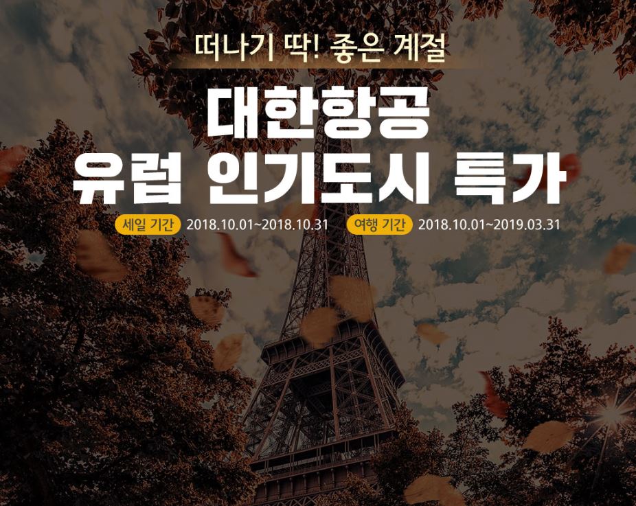 직판여행 ㈜노랑풍선은 떠나기 딱 좋은 계절인 가을, 대한항공으로 떠나는 ‘유럽 인기도시 특가 기획전’을 개최한다고 8일 밝혔다.
