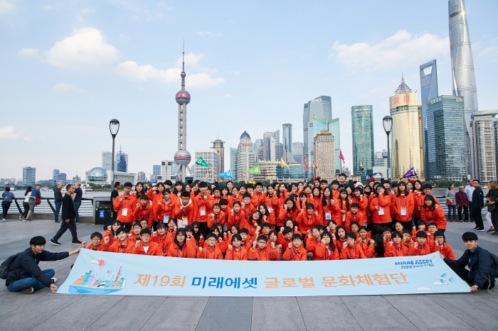 2007년부터 진행된 글로벌 문화체험단 프로그램은 미래에셋의 대표적인 인재육성 프로그램 중 하나로 금융 선진도시 상해 탐방을 통해 청소년들의 견문을 넓히고 비전을 설계하는데 도움을 주는 행사다. 현재까지 1730여명의 청소년들이 참여했으며, 오는 11월까지 내년 1월에 진행될 제20회 참가자를 모집할 계획이다.