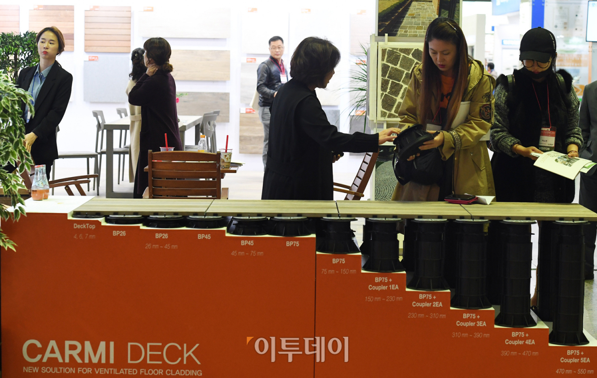 '2018 한국건축산업대전(KAFF 2018)'이 개막한 17일 오후 서울 강남구 코엑스에서 관람객들이 최첨단 건축 자재 및 공법을 살펴보고 있다. 이번 행사는 건축 자재 전시뿐 아니라 건축사 실무교육, 녹색건축한마당, 관련 세미나 등 다양한 행사가 함께 마련됐다. 오승현 기자 story@