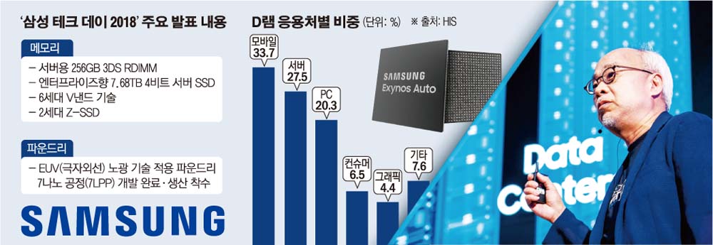 삼성전자는 17일(현지시각) 미국 실리콘밸리에서 진행한 ‘삼성 테크 데이(Samsung Tech Day) 2018’에서 서버용 256GB 3DS RDIMM과 엔터프라이즈향 7.68TB 4비트 서버 SSD, 6세대 V낸드 기술 등 차세대 신제품과 신기술을 대거 소개했다.