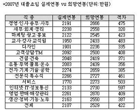 하지만 이들이 실제 손에 쥔 평균 연봉은 약 2107만원으로, 희망연봉과 실제연봉 간 422만원이라는 적지 않은 격차가 나타났다.
