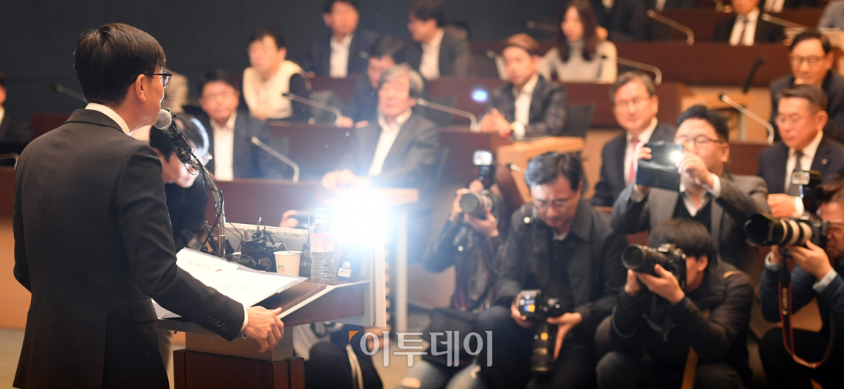 김상조 공정거래위원장이 22일 오전 서울 중구 대한상공회의소에서 열린 '공정거래정책 기업 간담회'에서 강연하고 있다. 이날 김 위원장은 기업인들을 대상으로 공정거래법 전부 개정안과 하도급법 개정 시행령 등 최근 변화된 정책을 강연했다. 오승현 기자 story@