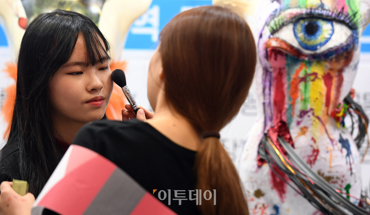 '2018 진로·직업체험박람회'가 개막한 24일 오후 경기도 고양시 일산 킨텍스에서 학생들이 다양한 직업을 체험하며 자신에 맞는 진로를 찾고 있다. '전문가를 만드는 힘 전문대학'이라는 슬로건 아래 열린 이번 박람회는 전문대학의 실용교육을 확산하기 위해 마련됐다. 오승현 기자 story@