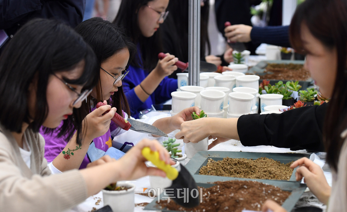 '2018 진로·직업체험박람회'가 개막한 24일 오후 경기도 고양시 일산 킨텍스에서 학생들이 다양한 직업을 체험하며 자신에 맞는 진로를 찾고 있다. '전문가를 만드는 힘 전문대학'이라는 슬로건 아래 열린 이번 박람회는 전문대학의 실용교육을 확산하기 위해 마련됐다. 오승현 기자 story@