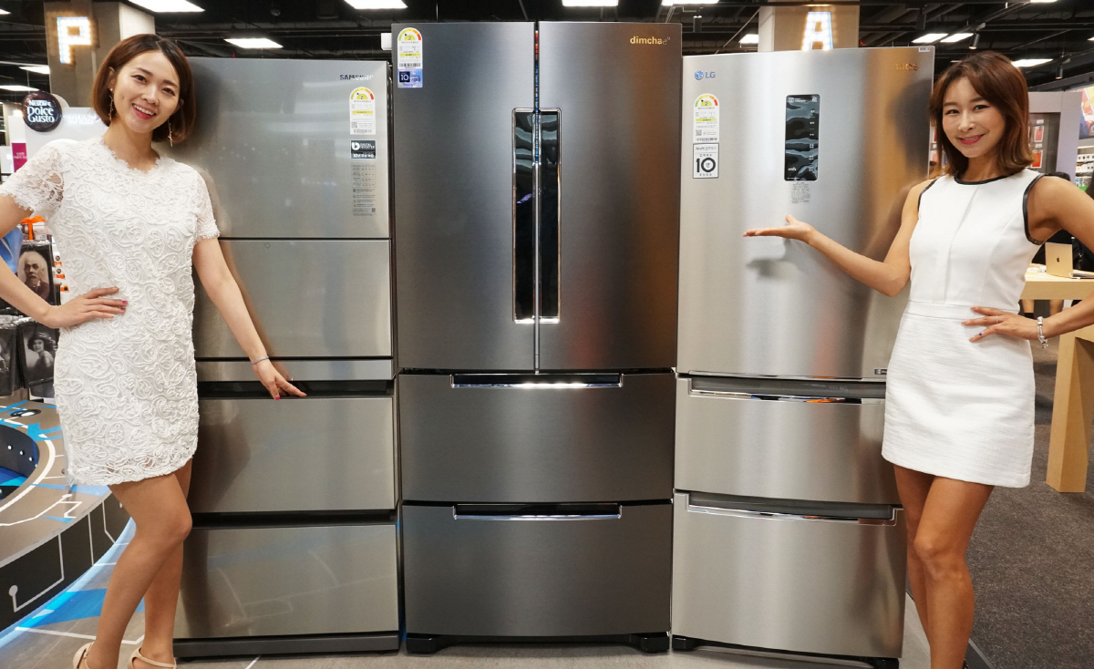 24일 일렉트로마트 영등포점에서 모델들이 김치냉장고 행사 상품들을 선보이고 있다. 이마트는 김장철을 앞두고 25일부터 11월 7일까지 삼성·LG·위니아 김치냉장고 할인 및 상품권ㆍ사은품 증정 행사를 실시한다.