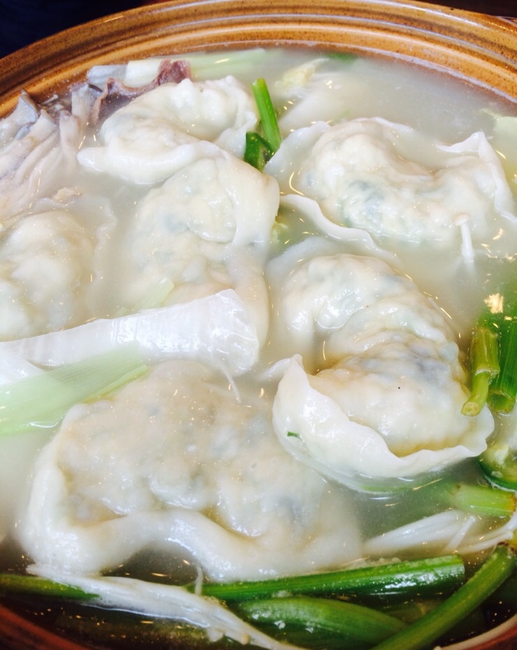 맑은 육수에 커다란 만두와 배추, 버섯, 미나리, 소고기 등이 들어가 간장 소스에 조금씩 찍어먹으면 최고의 맛을 느낄 수 있다고 한다.