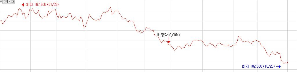 주가 역시 최저 수준이다. 1일 현대차 종가는 10만 8500원으로 연초대비 30% 이상 급락한 상황이다.