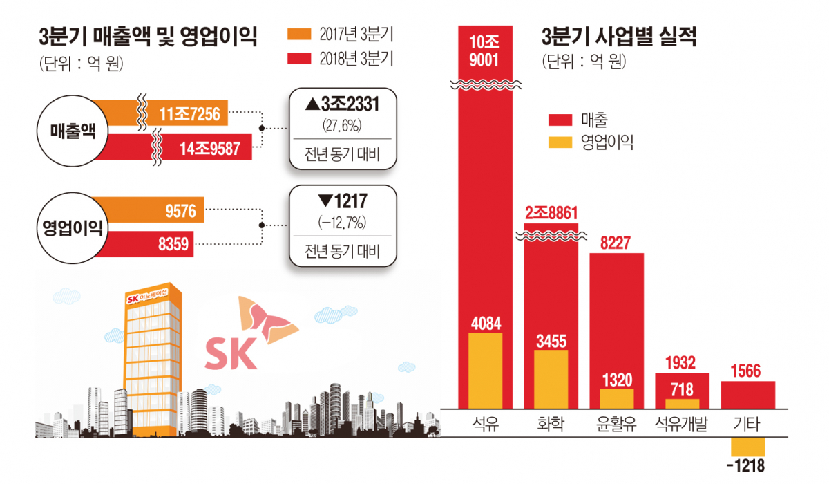 SK이노베이션이 정유부문의 수익성 하락에도 비정유부문의 호조로 3분기 실적 방어에 성공했다. ‘딥체인지 2.0’을 통해 정유회사를 넘어 종합에너지ㆍ화학기업으로 입지를 다지고 있는 SK이노베이션이 실적으로 이를 증명한 것이다.