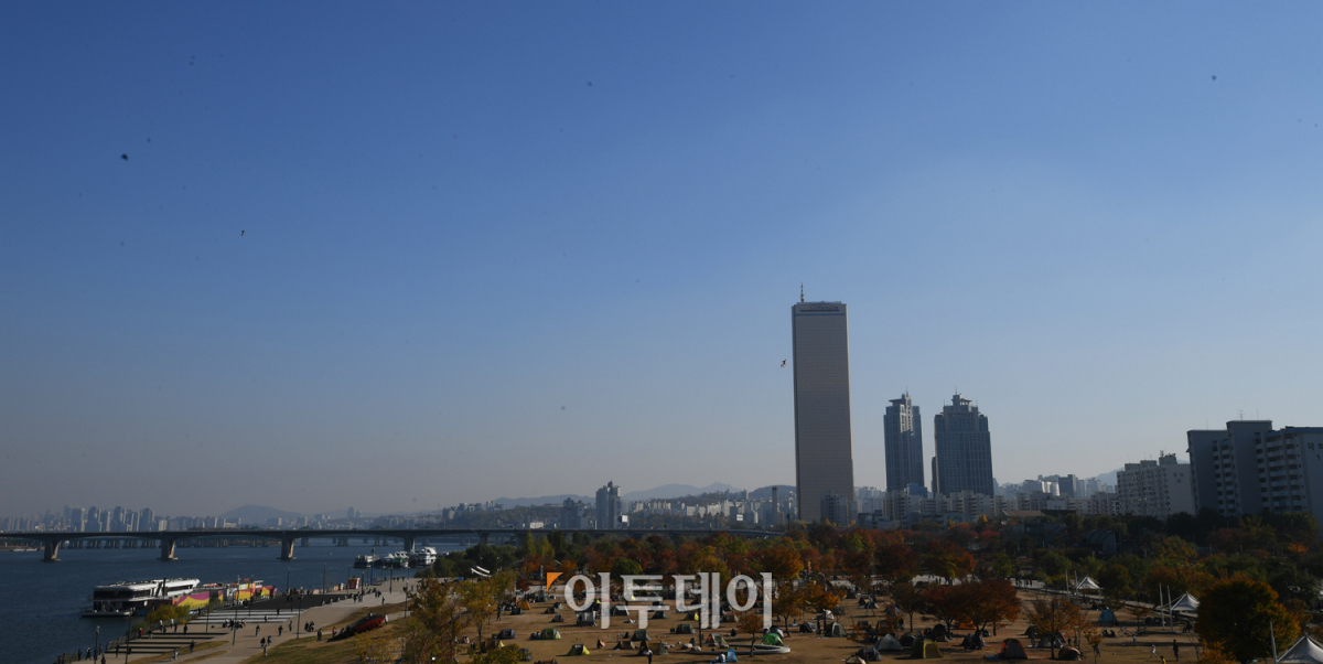 수도권을 비롯한 중서부지역의 초미세먼지 농도가 '나쁨' 수준을 보인 4일 오후 서울 마포대교에서 바라본 도심에 노란 미세먼지 띠가 드리워져 있다. 초미세먼지는 머리카락 굵기의 30분의 1 정도로 작아 호흡기에서 걸러지지 않고 허파꽈리까지 그대로 침투하기 때문에 미세먼지보다 인체에 해롭다. 오승현 기자 story@