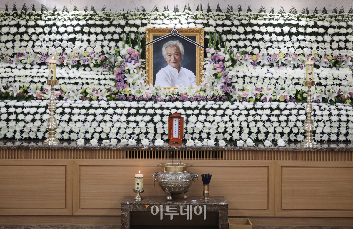 국민배우 신성일(본명 강신성일) 씨가 4일 오전 2시 30분 지병으로 타계했다. 향년 81세. 고인의 장례식은 영화인장으로 엄수되며 장지는 경북 영천의 선영이다. 사진은 서울아산병원 장례식장에 마련된 고인의 빈소. 사진공동취재단