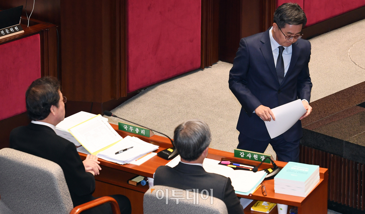 [포토] 예산안 설명 마치고 자리로 향하는 김동연 부총리