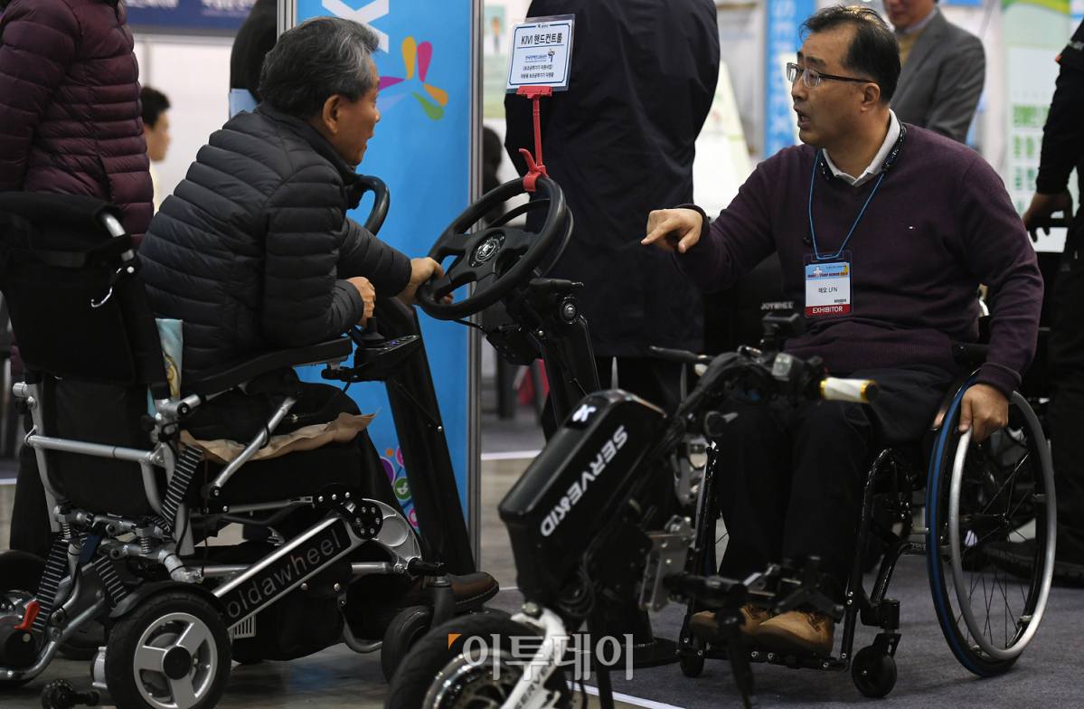 시니어 세대의 라이프스타일과 복지를 위한 다양한 제품과 서비스를 한 자리에서 만나볼 수 있는 '시니어리빙&복지박람회(SENDEX 2018)'이 8일 경기도 고양시 킨텍스에서 개막했다. 박람회장을 찾은 관람객들이 다양한 식품과 보조기기 등을 살펴보고 있다. 오승현 기자 story@