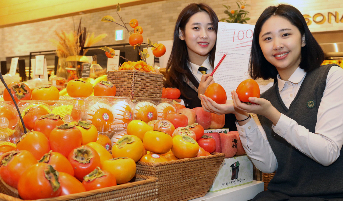 신세계백화점은 본점, 강남점 등 주요 점포 식품관에서 수능과 수시 시즌을 맞아 대봉시, 단감, 감말랭이 등 감과 관련된 상품 할인전을 연다고 12일 밝혔다. 이번에 선보이는 상품은 풍부한 일조량과 비옥한 토양, 바다의 해풍으로 과색이 좋고 당도가 높은 ‘고창 대봉시(4입팩, 1만 원)’와 단감의 유명 생산지인 진주에서 재배된 ‘부유 단감(4입팩, 7000원)’ 등이다. 사진제공 신세계백화점
