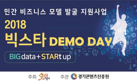 (재)경기콘텐츠진흥원은 오는 14일 판교 스타트업 캠퍼스 다목적홀에서 ‘2018년 빅스타(BIGdata STARtup) 데모데이’를 개최한다.