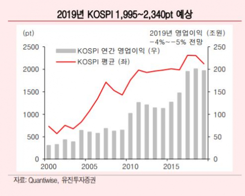 유진투자증권은 2019년 연간 코스피 예상밴드를 1995~2340선이 될 것이라고 전망했다.
