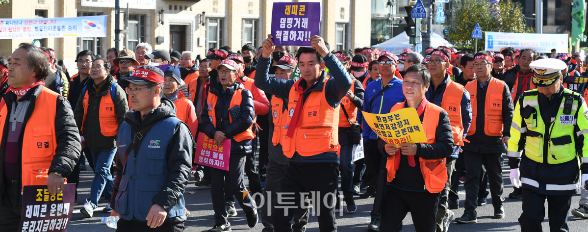 [포토] 도심 행진하는 전국레미콘운송총연합회