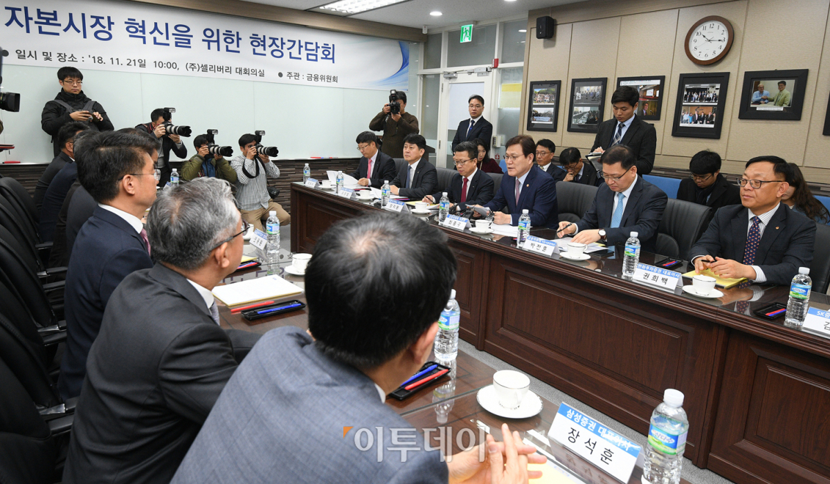 최종구 금융위원장이 21일 오전 서울 마포구 상암동에 위치한 '성장성 특례 상장 1호' 바이오 기업 셀리버리에서 열린 '자본시장 혁신을 위한 현장간담회'에 참석해 모두발언을 하고 있다. 이날 최 위원장, 유광열 금융감독원 수석부원장, 정지원 한국거래소 이사장, 권용원 한국금융투자협회장과 8개 증권사 대표이사 등은 현장의 애로사항을 청취하고 금융권의 역할에 대해 의견을 나눴다. 오승현 기자 story@