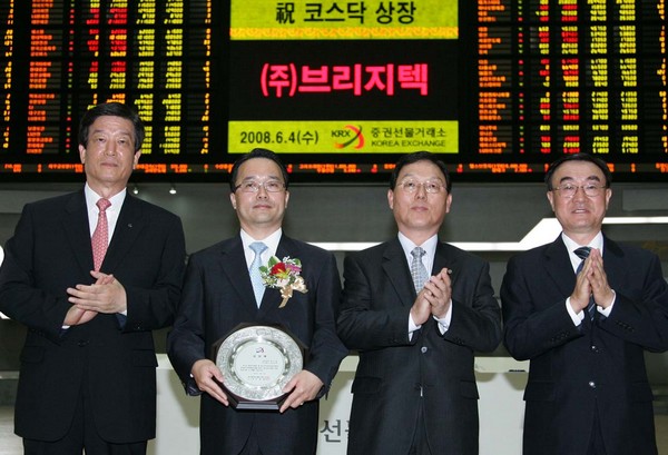 증권선물거래소 코스닥시장본부는 4일 오전8시40분부터 서울사옥 종합홍보관에서 멀티미디어통신 솔루션 전문업체인 브리지텍의 코스닥 신규상장기념식을 개최했다.