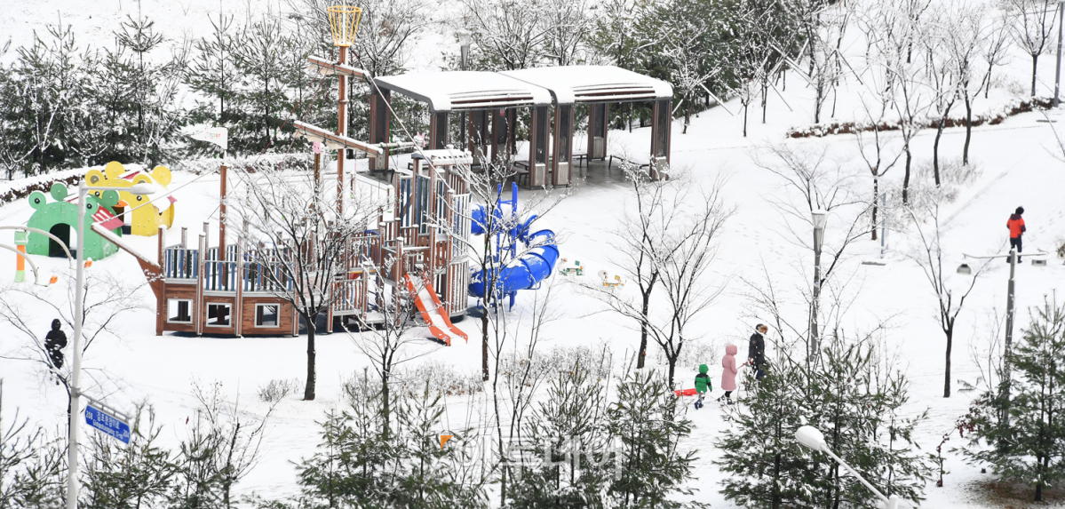 중부지방 곳곳에 첫눈이 내린 24일 오전 경기도 김포시 김포한강신도시에 하얀 눈이 소복이 쌓여 있다. 오승현 기자 story@