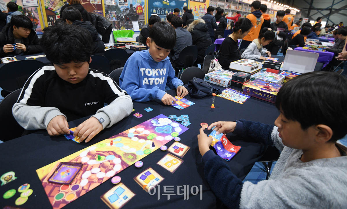 '서울보드게임페스타 2018'이 열린 25일 오전 서울 강남구 세텍에서 어린이들이 다양한 보드게임을 즐기고 있다. 오승현 기자 story@