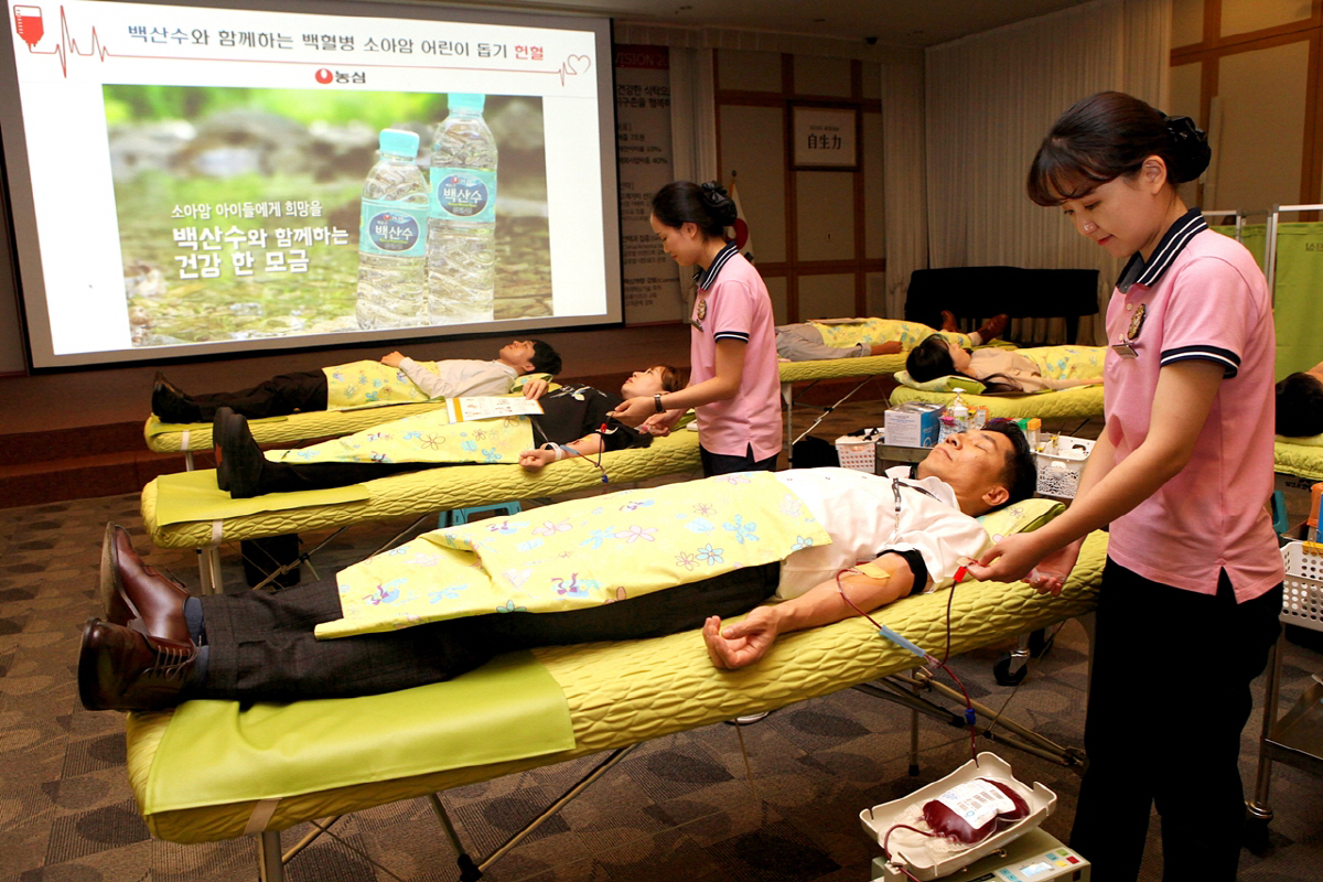 농심은 이런 환우들을 위해 올 초부터 매달 백혈병 소아암 200가구에 백산수 500㎖들이 3박스씩 지원하고 있다. 또 협회에서 운영하는 전국 9개 지원 시설에도 매달 백산수를 보내고 있다. 최근까지 제공된 백산수 수량은 10만 병이 넘는다.