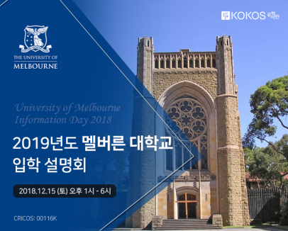 호주 멜번(멜버른)대학교가 오는 12월 15일(토) 서울 코엑스에서 입학설명회를 개최한다.