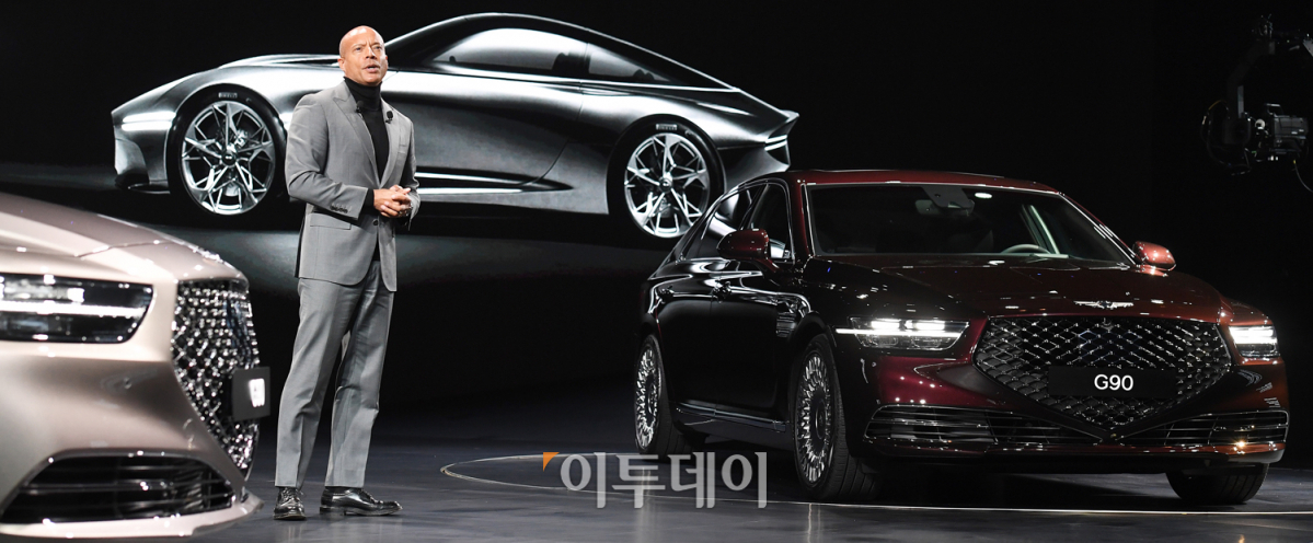 제네시스가 브랜드를 대표하는 플래그십 세단 '제네시스 G90(지나인티)'의 공식 출시행사를 갖고 본격적인 판매에 돌입했다. '제네시스 G90 미디어 쇼케이스'가 열린 27일 오전 서울 중구 신라호텔에서 맨프레드 피츠제럴드 현대자동차 제네시스사업부장(부사장)이 '제네시스 G90'를 소개하고 있다. '제네시스 G90'는 지난 2015년 브랜드 최초로 국내에서 선보인 초대형 플래그십 세단 'EQ900'의 페이스리프트 모델이다. 오승현 기자 story@