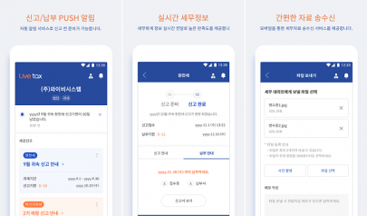 Live tax는 인터넷 납세 서비스(홈택스&위택스)와 연계를 기반으로 세무대리인이 세금 신고를 완료하면, 사업자는 스마트폰을 통해 실시간으로 세금신고내역 및 납부세액을 한눈에 확인할 수 있다. 해당 서식을 보관 및 다운받을 수 있어 아날로그 성향의 세무시장에 새로운 트랜드로 자리매김할 것으로 기대하고 있다.