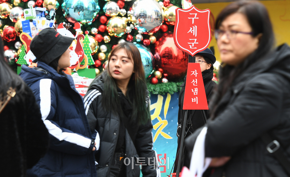 연말연시를 맞아 구세군 종소리가 전국 곳곳에 울려 퍼지고 있다. 2일 오후 서울 중구 명동에 마련된 '구세군 자선냄비'가 이웃의 따뜻한 손길을 기다리고 있다. 오승현 기자 story@