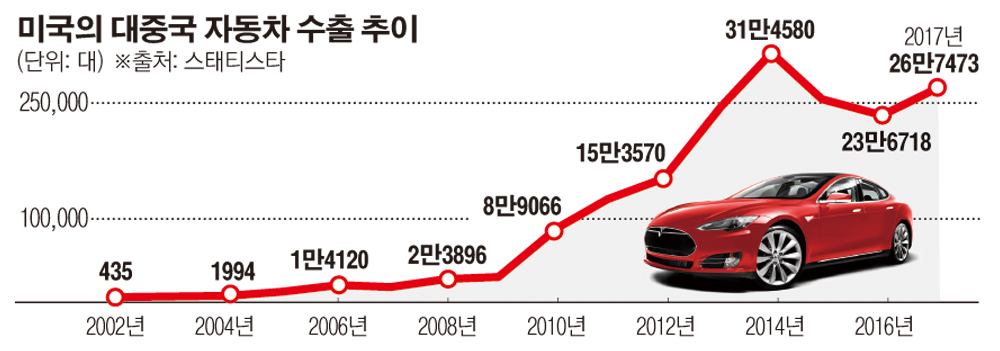 미국 상무부에 따르면 미국은 지난해 중국에 95억 달러(약 10조6000억 원)의 승용차와 경트럭을 수출했다.